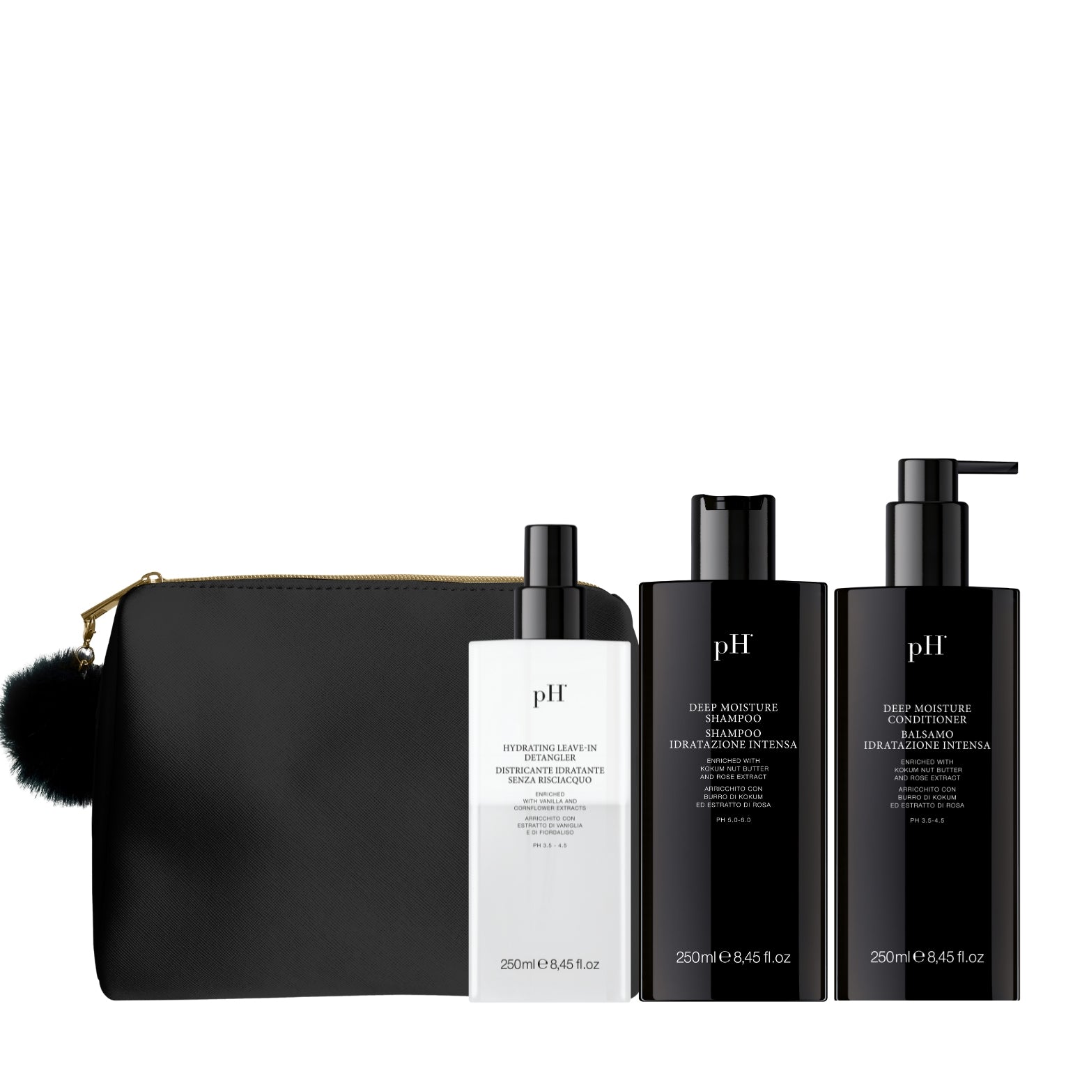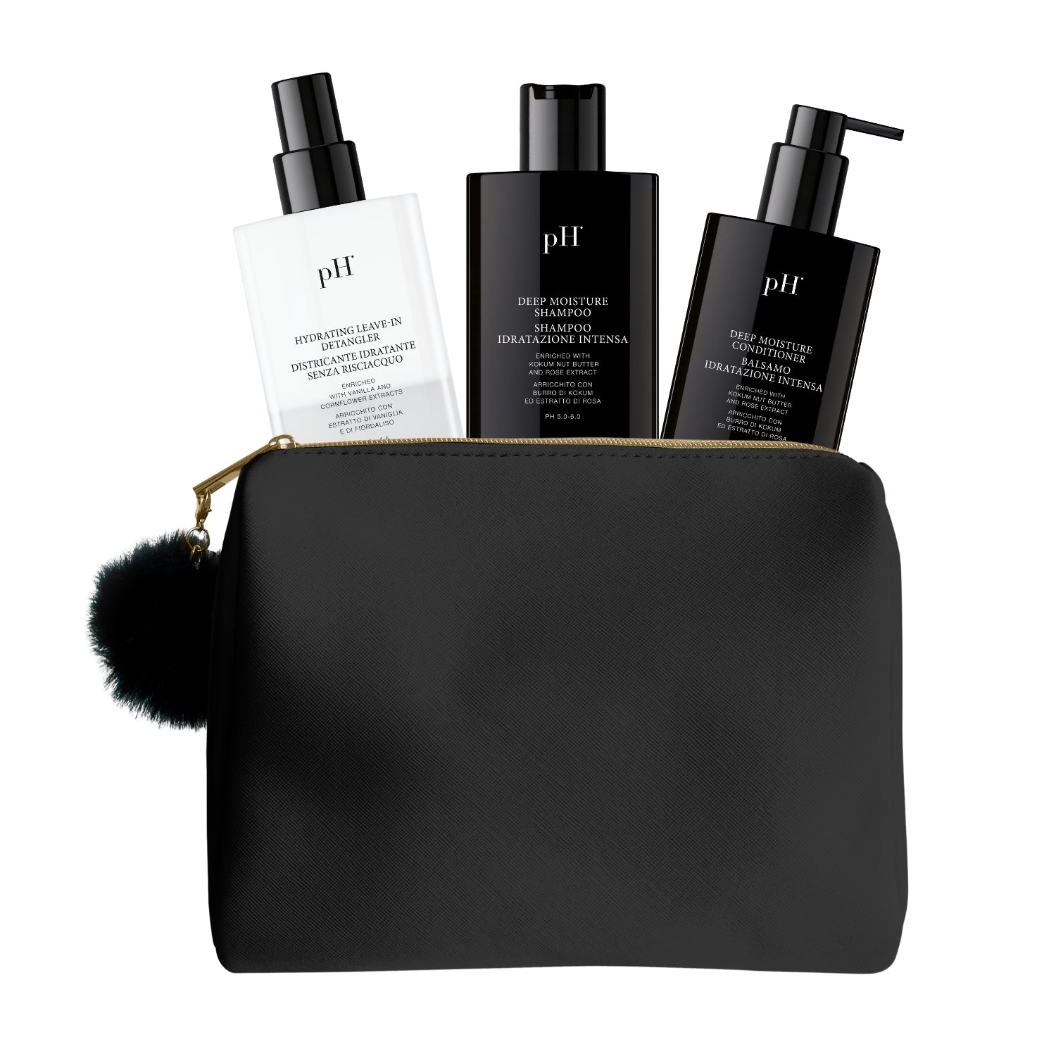 Der Deep Cold Moisture Bundle ist ein exklusives Winter-Bundle, das drei intensiv feuchtigkeitsspendende Haarpflegeprodukte mit einer eleganten Kulturtasche vereint. Perfekt für alle, die trockenes, strapaziertes oder wintergestresstes Haar wieder geschmeidig pflegen möchten.